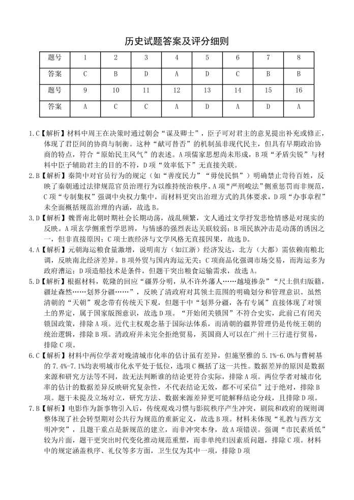 邕衡教育·广西2025年5月高三模拟考 历史答案.pdf