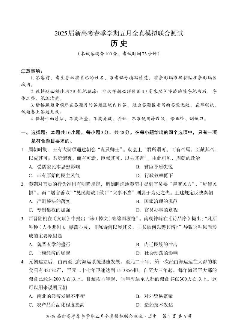 邕衡教育·广西2025年5月高三模拟考 历史.pdf
