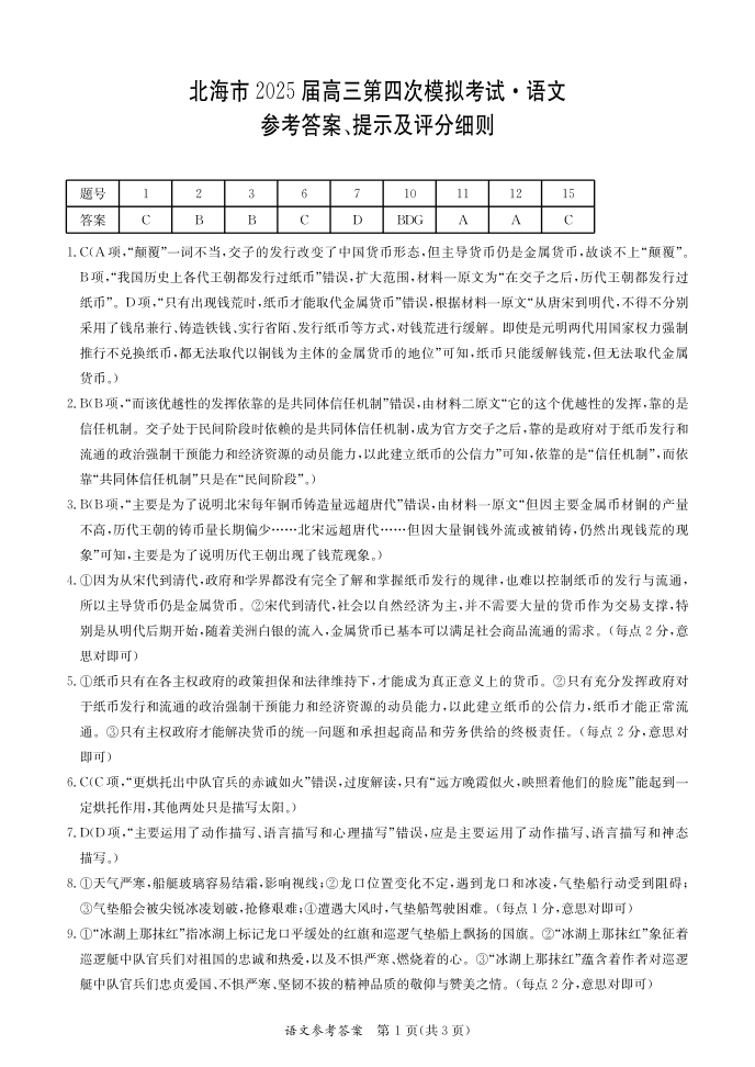 北海2025年5月高三四模 语文答案.pdf