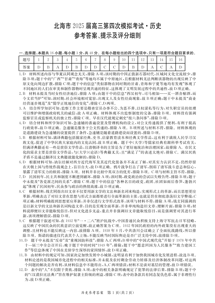 北海2025年5月高三四模 历史答案.pdf
