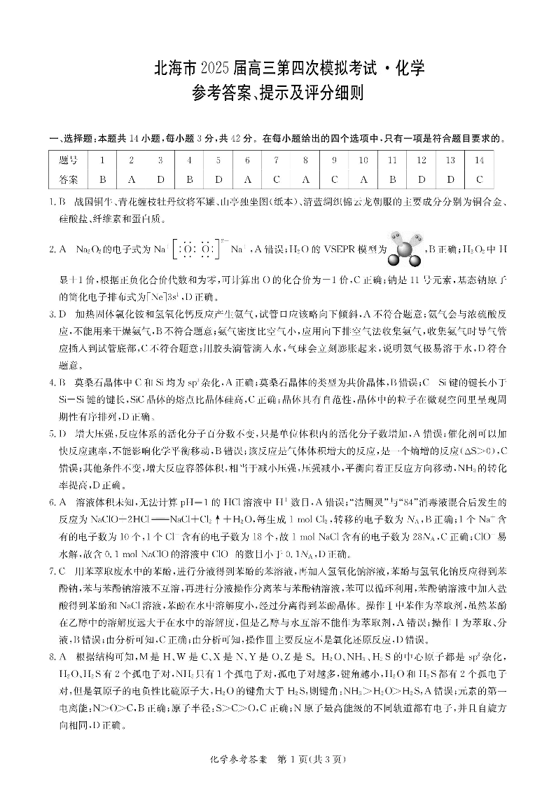 北海2025年5月高三四模 化学答案.pdf