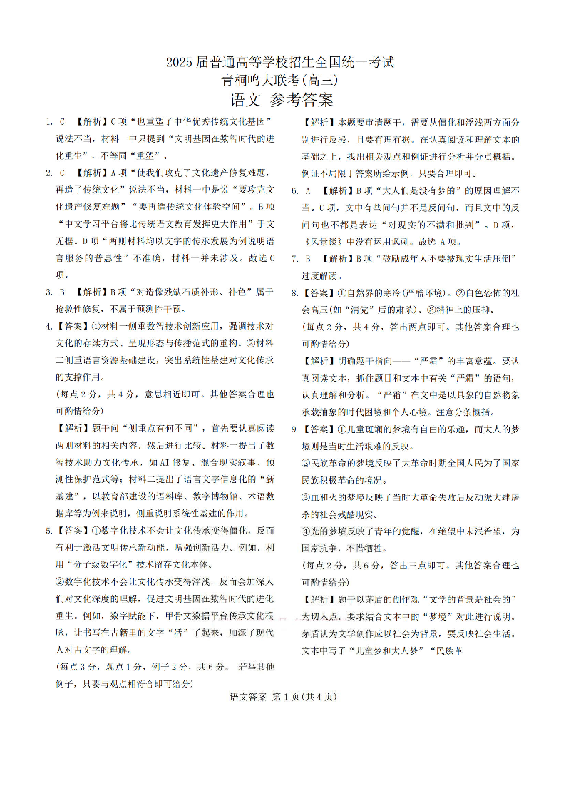 河南省青桐鸣大联考2025届高三下学期5月考试 语文答案.pdf