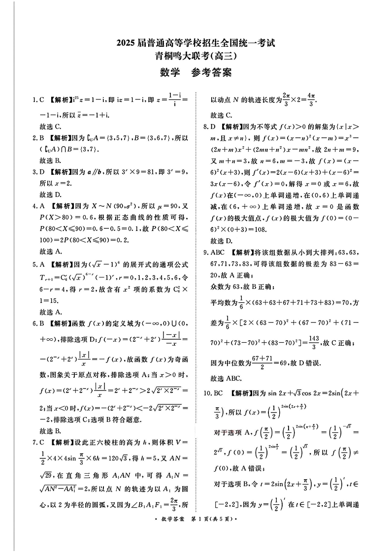 河南省青桐鸣大联考2025届高三下学期5月考试 数学答案.pdf