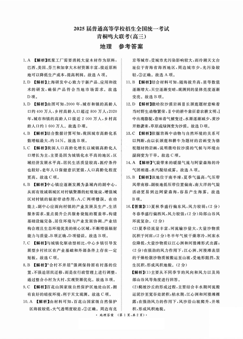 河南省青桐鸣大联考2025届高三下学期5月考试 地理答案.pdf