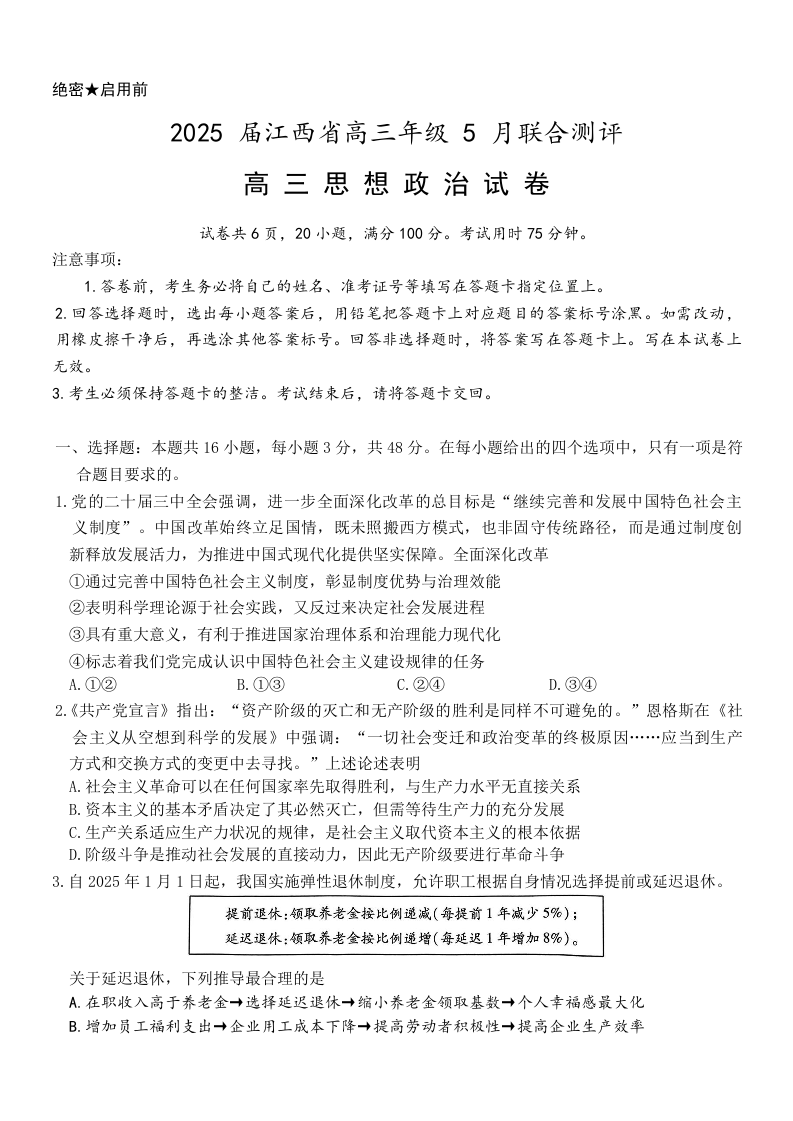 江西省上进联考2025届高三年级5月联合测评 政治.docx