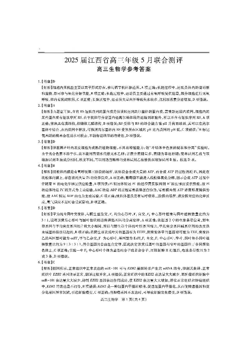 江西省上进联考2025届高三年级5月联合测评 生物答案.pdf