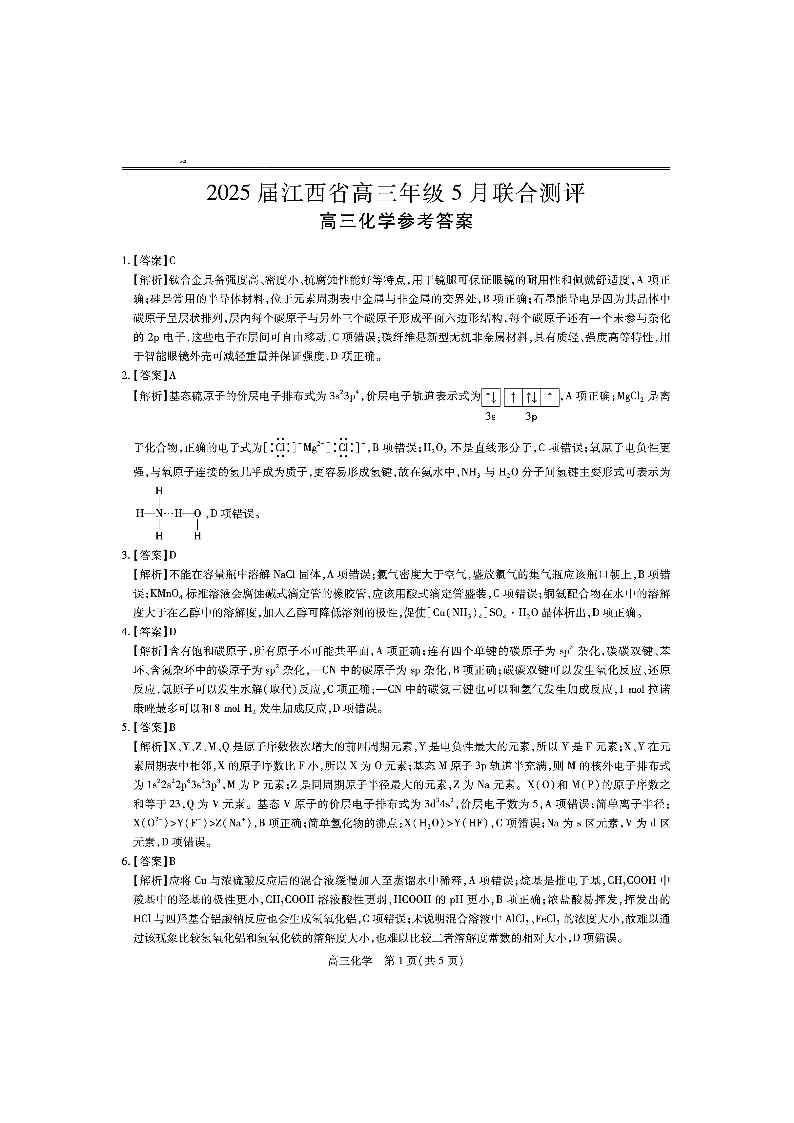 江西省上进联考2025届高三年级5月联合测评 化学答案.pdf