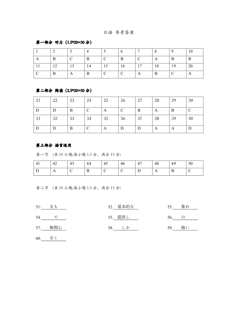 湖北省高中名校联盟2025届高三第四次联合测评 日语答案.pdf