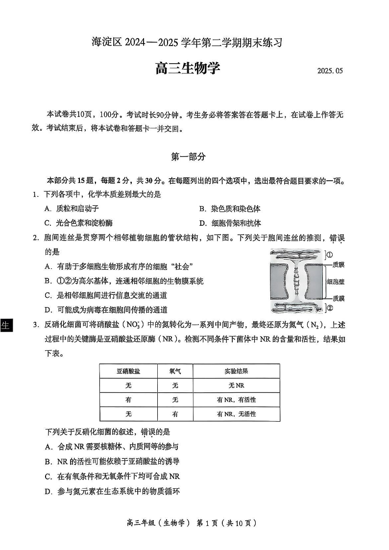 2025年北京市海淀区高三二模-生物(含答案).pdf