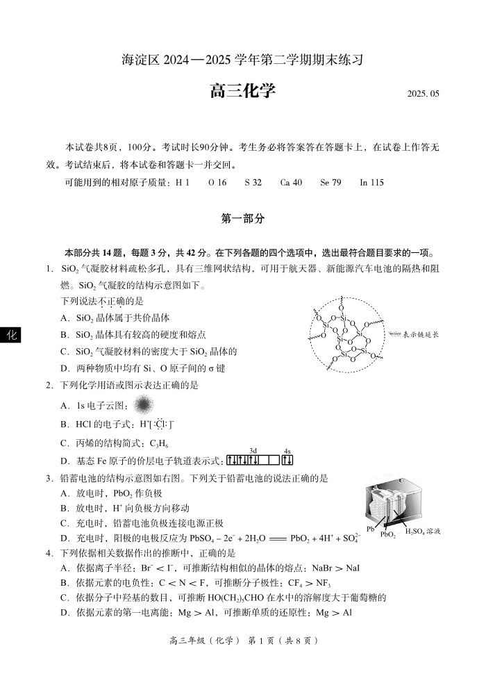 2025年北京市海淀区高三二模-化学(含答案).pdf