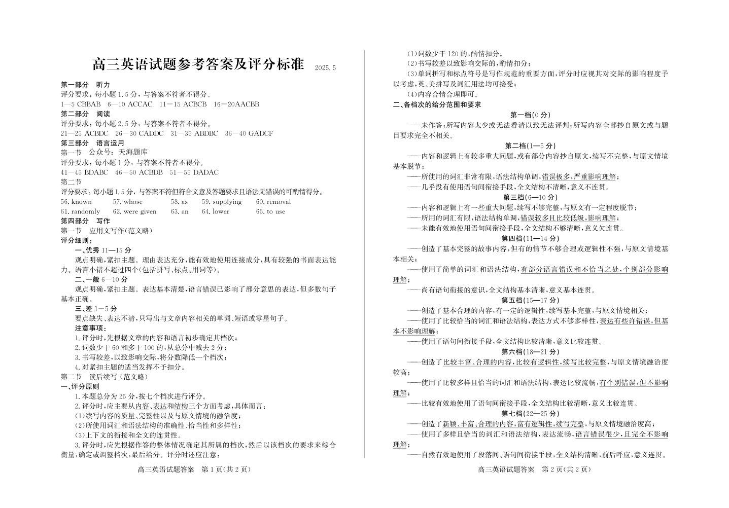 滨州二模 英语答案.pdf