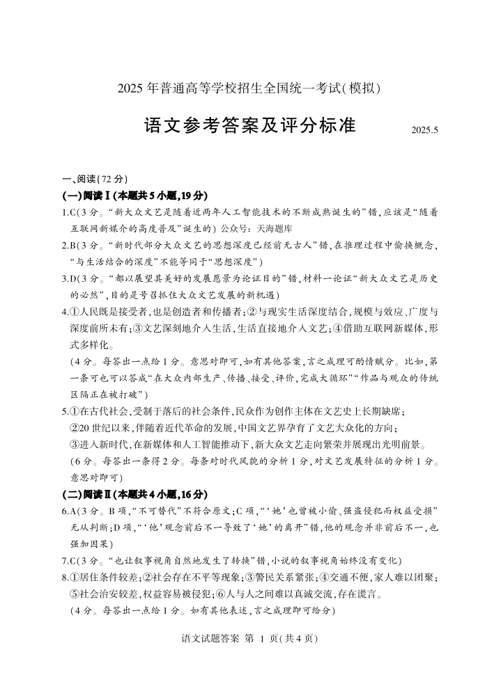 临沂市2025年5月高三第二次模拟考试 语文答案.pdf
