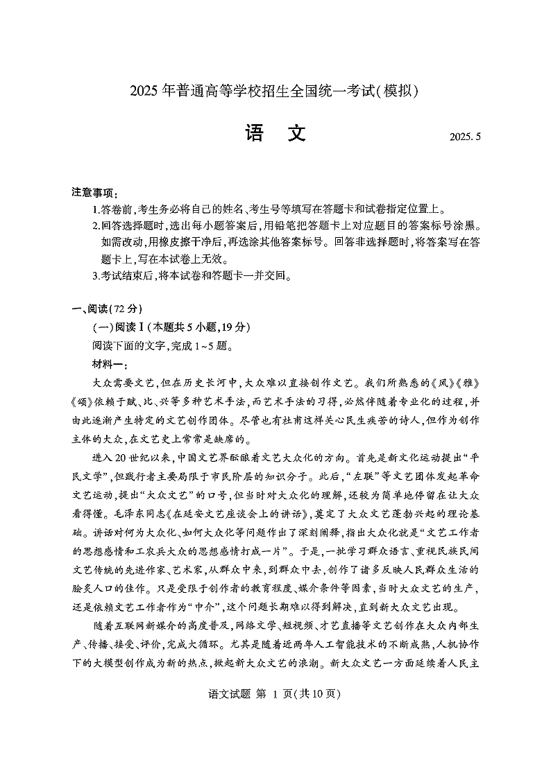 临沂市2025年5月高三第二次模拟考试 语文.pdf