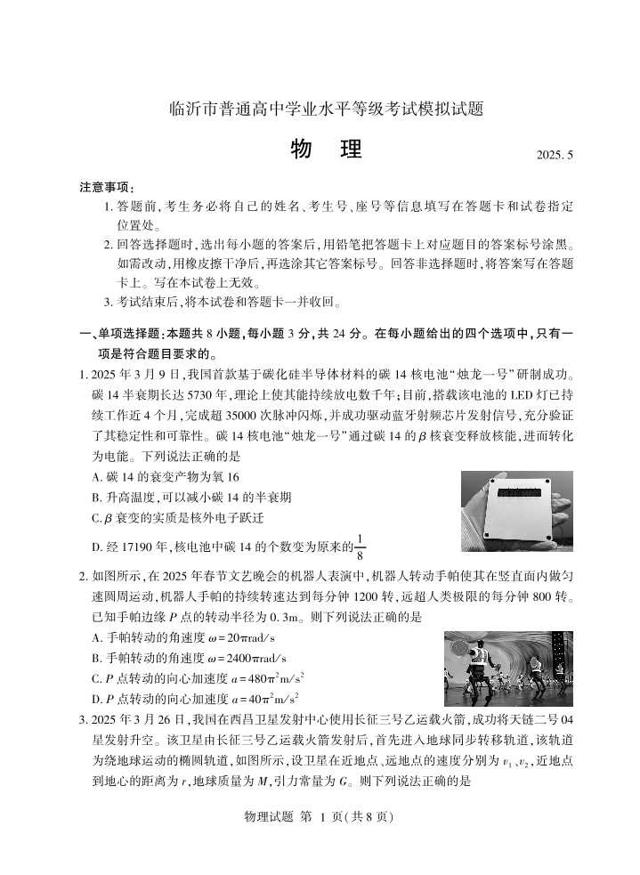 临沂市2025年5月高三第二次模拟考试 物理.pdf