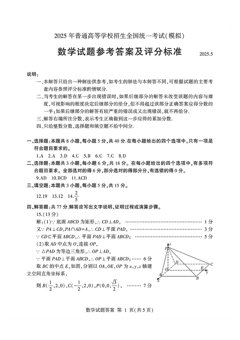 临沂市2025年5月高三第二次模拟考试 数学答案.pdf