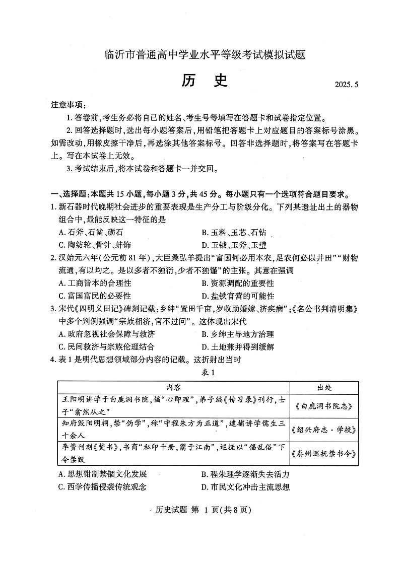 临沂市2025年5月高三第二次模拟考试 历史.pdf