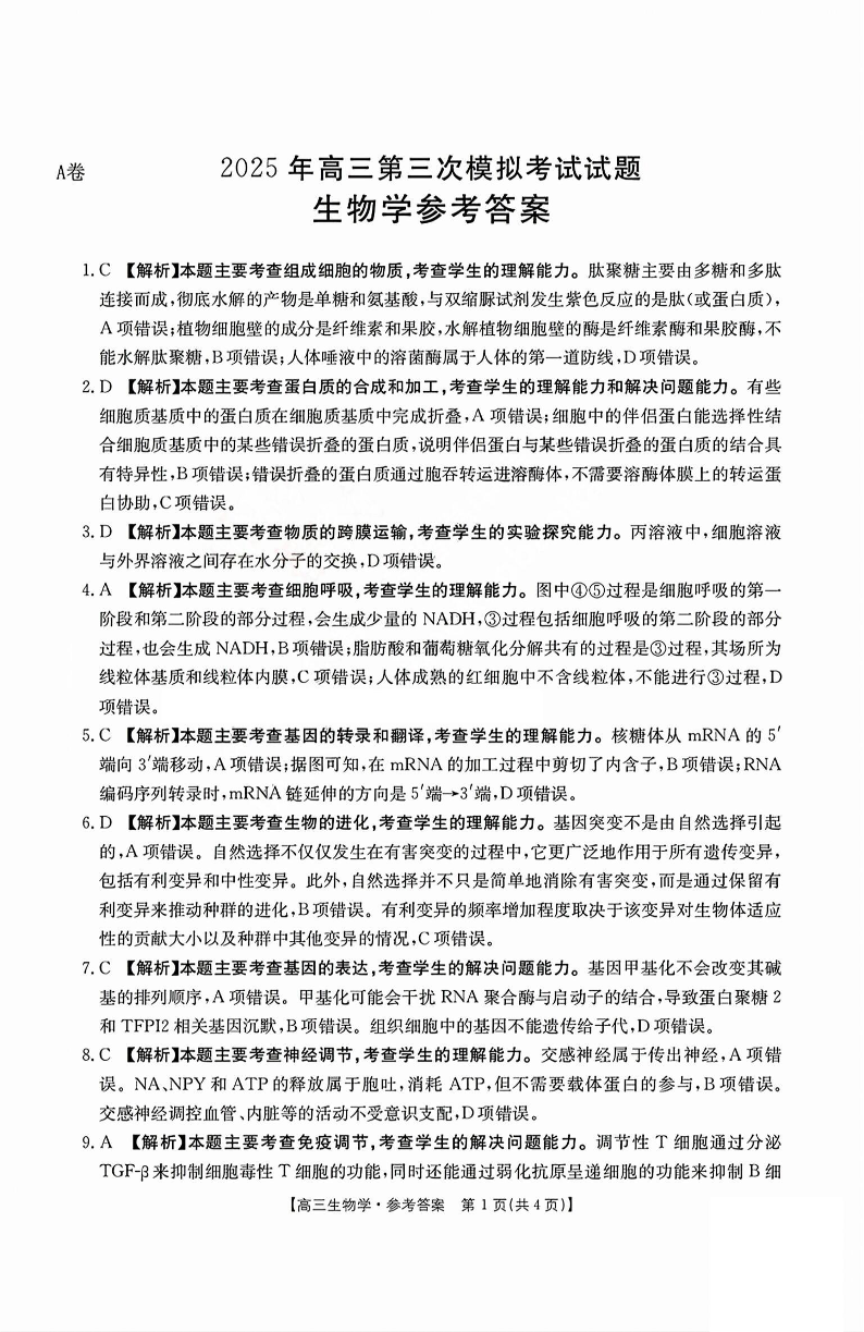 晋城市2025年高三第三次模拟考试 生物答案.pdf
