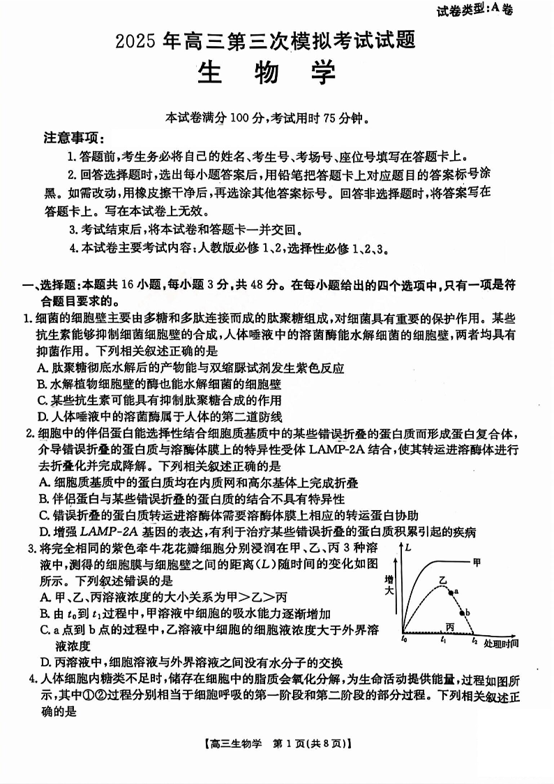 晋城市2025年高三第三次模拟考试 生物.pdf