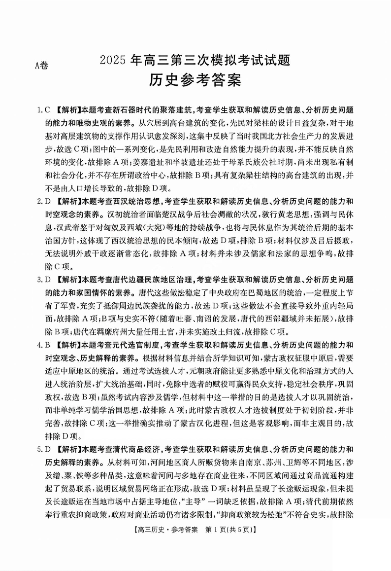 晋城市2025年高三第三次模拟考试 历史答案.pdf