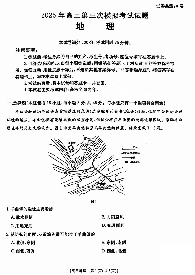 晋城市2025年高三第三次模拟考试 地理.pdf