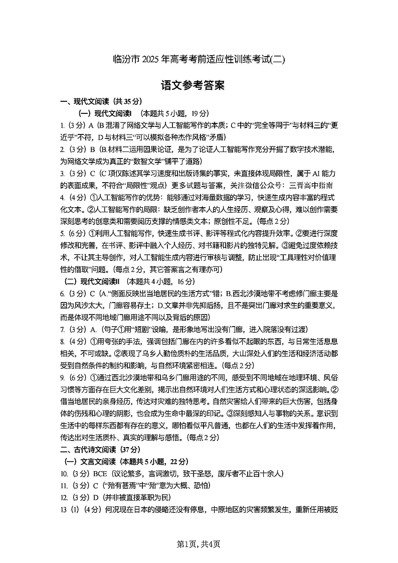 临汾市2025年高考适应性训练考试(二)语文答案.pdf