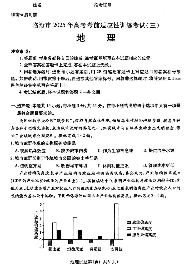临汾市2025年高考考前适应性训练考试(三) 地理(含答案).pdf