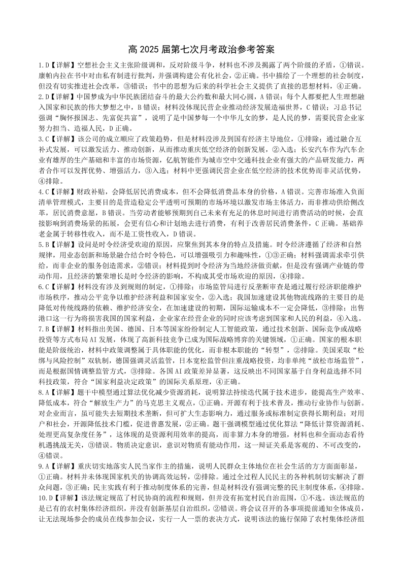 重庆市第八中学高2025届高考适应性月考卷(七)政治答案.pdf