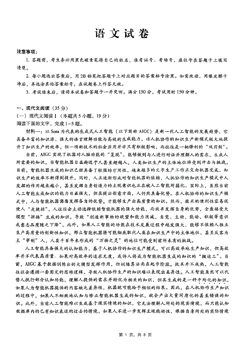 重庆市第八中学高2025届高考适应性月考卷(七)语文.pdf
