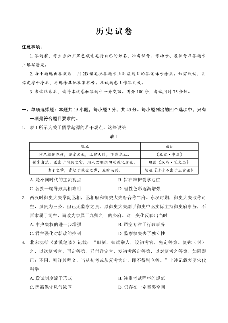 重庆市第八中学高2025届高考适应性月考卷(七)历史.pdf