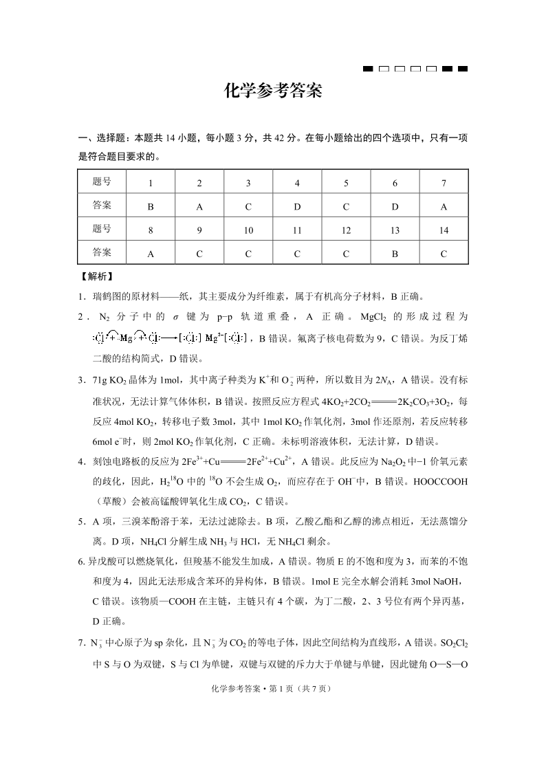 重庆市第八中学高2025届高考适应性月考卷(七)化学答案.pdf