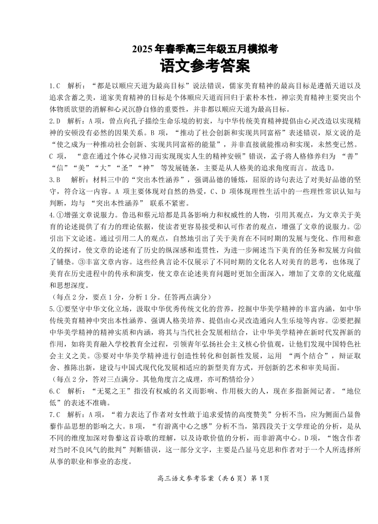 湖北省鄂东南2025年春季高三年级五月模拟考 语文答案.pdf