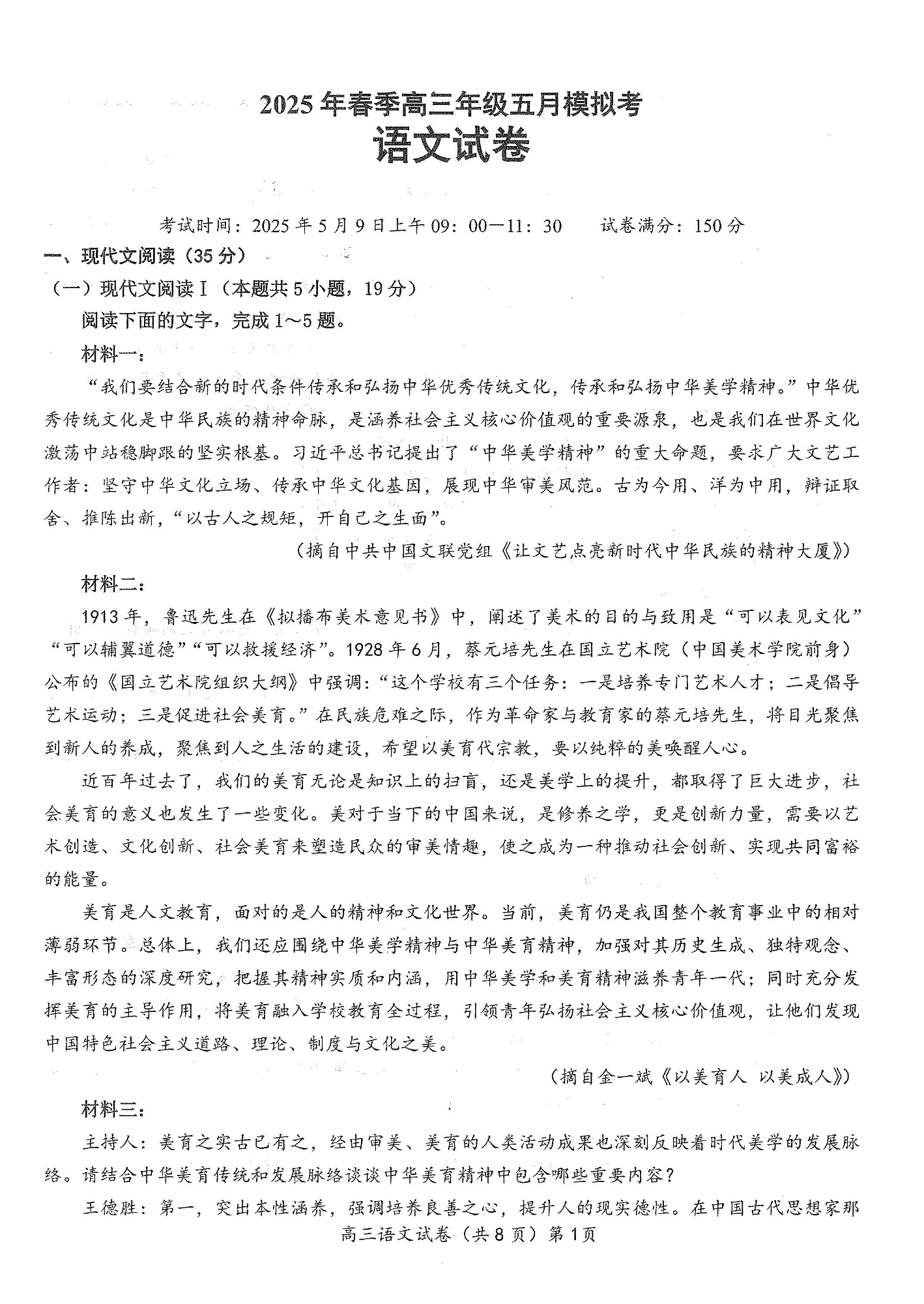 湖北省鄂东南2025年春季高三年级五月模拟考 语文.pdf