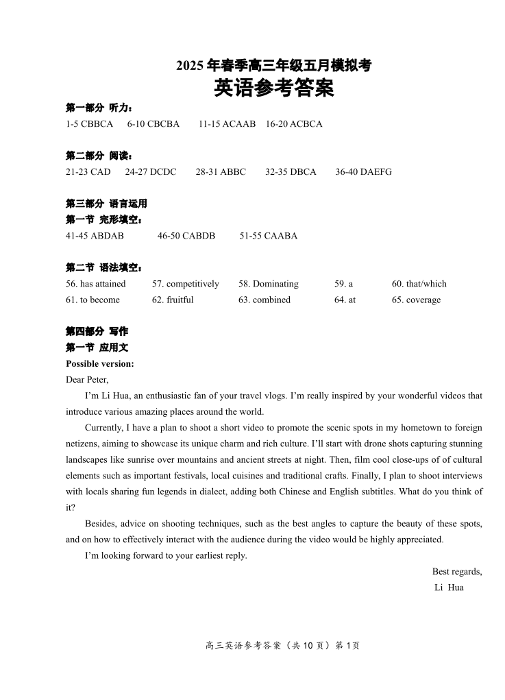 湖北省鄂东南2025年春季高三年级五月模拟考 英语答案.pdf
