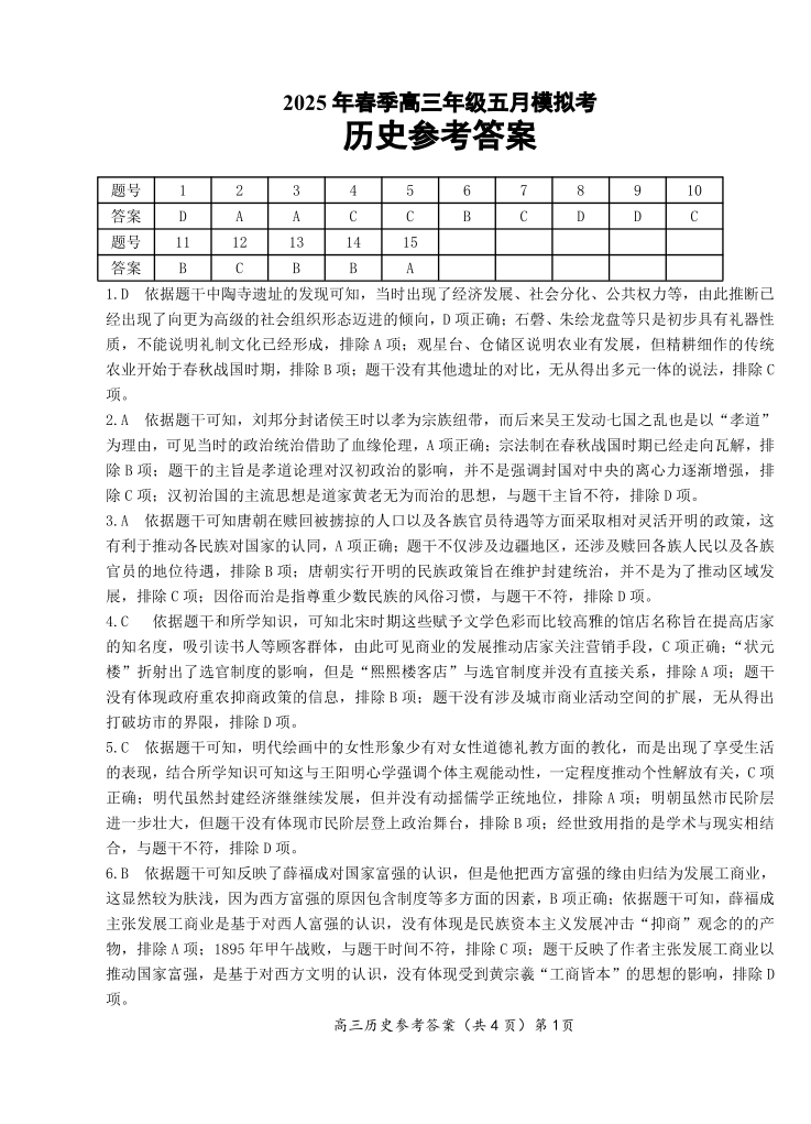 湖北省鄂东南2025年春季高三年级五月模拟考 历史答案.pdf