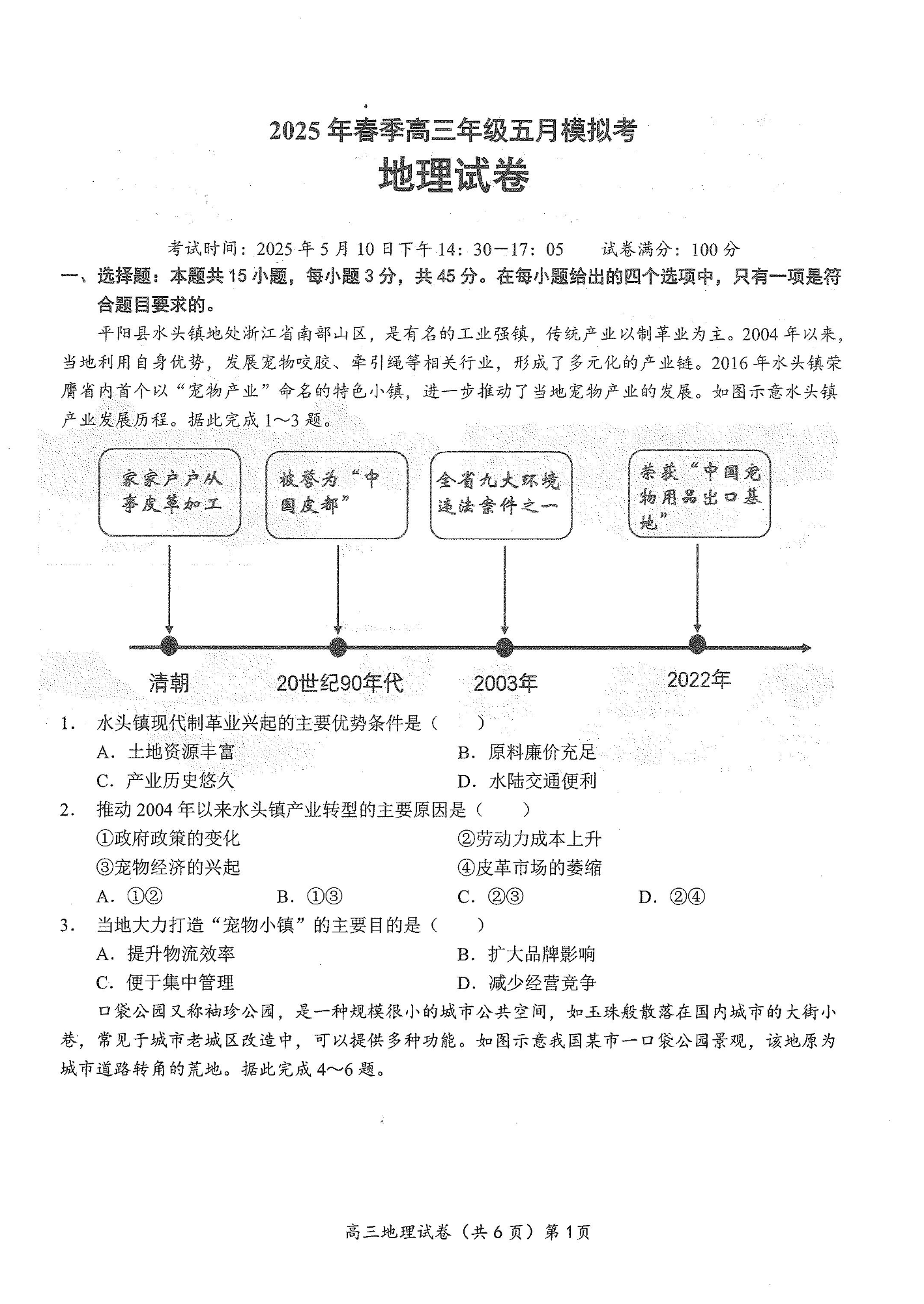 湖北省鄂东南2025年春季高三年级五月模拟考 地理.pdf