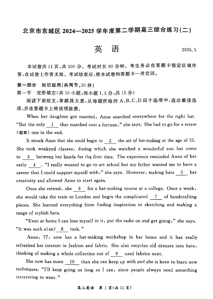 2025年北京市东城区高三二模-英语(含答案).pdf