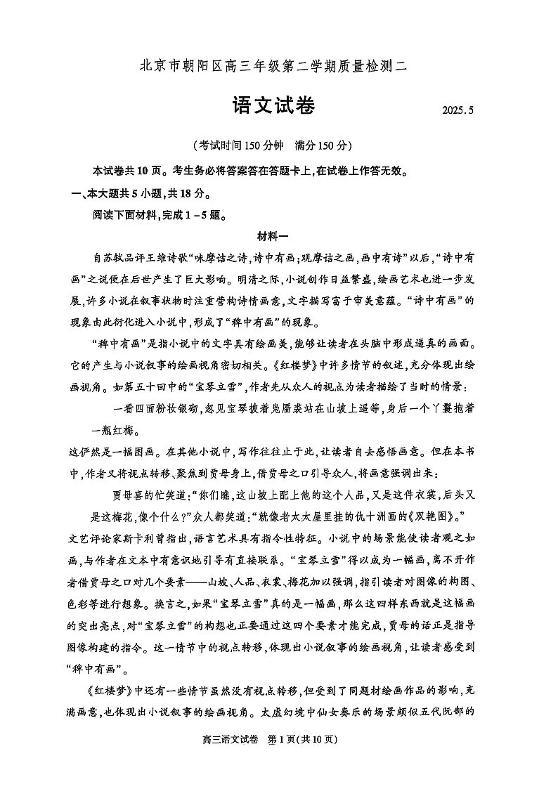 2025年北京市朝阳区高三二模-语文(含答案).pdf