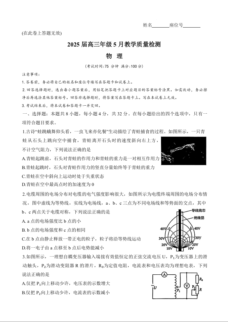 合肥市示范中学2025届高三年级5月教学质量检测 物理.docx