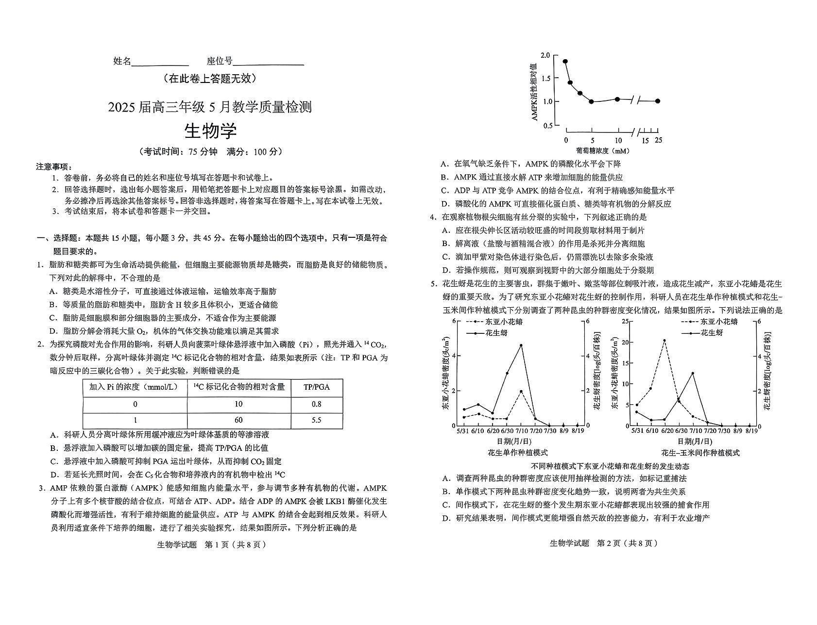合肥市示范中学2025届高三年级5月教学质量检测 生物.pdf