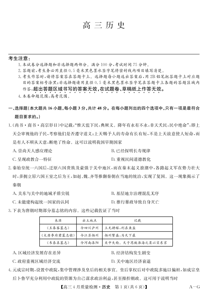 四川省九师联盟2025届高三仿真模拟卷 历史.pdf