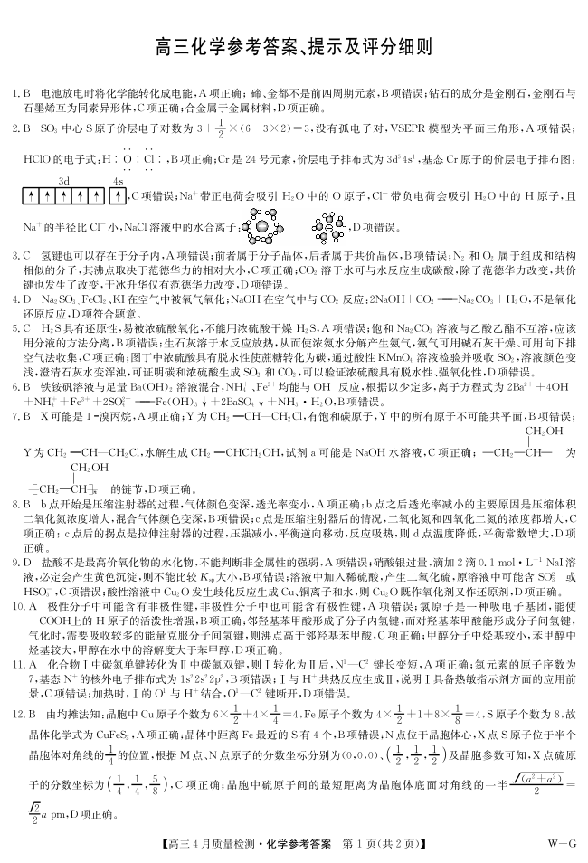 四川省九师联盟2025届高三仿真模拟卷 化学答案.pdf
