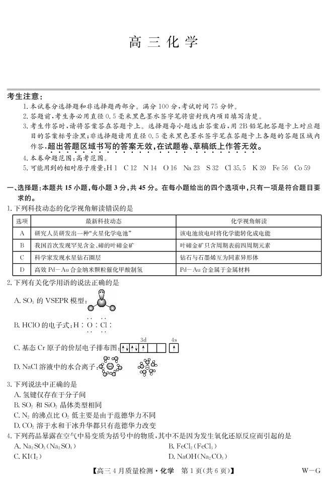 四川省九师联盟2025届高三仿真模拟卷 化学.pdf
