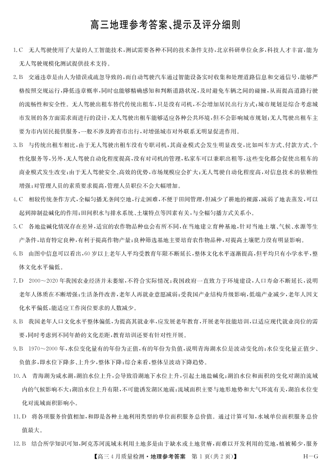 四川省九师联盟2025届高三仿真模拟卷 地理答案.pdf