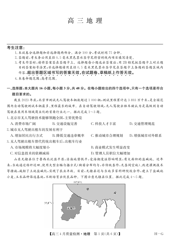 四川省九师联盟2025届高三仿真模拟卷 地理.pdf