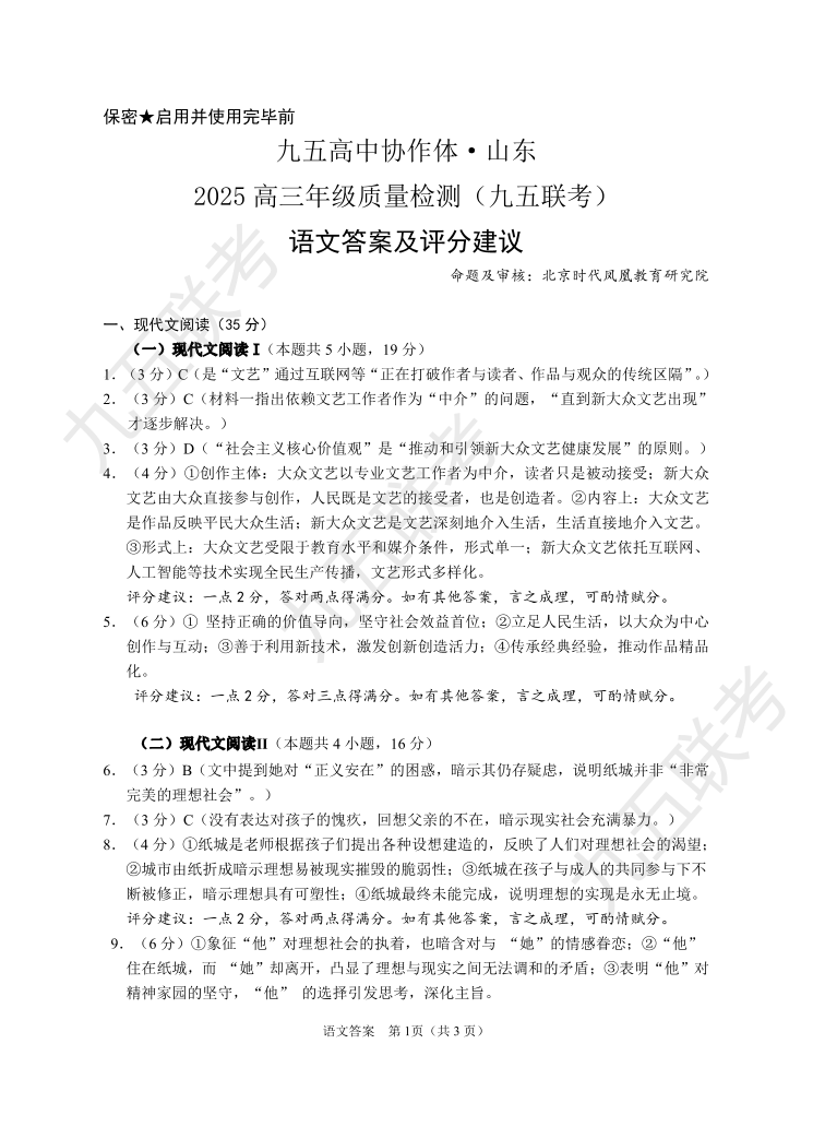 九五联考-语文答案及评分建议.pdf