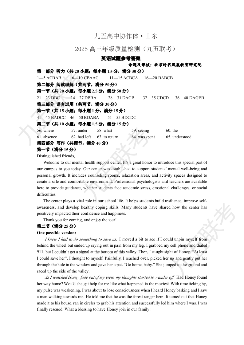 九五联考-英语答案及听力录音材料.pdf