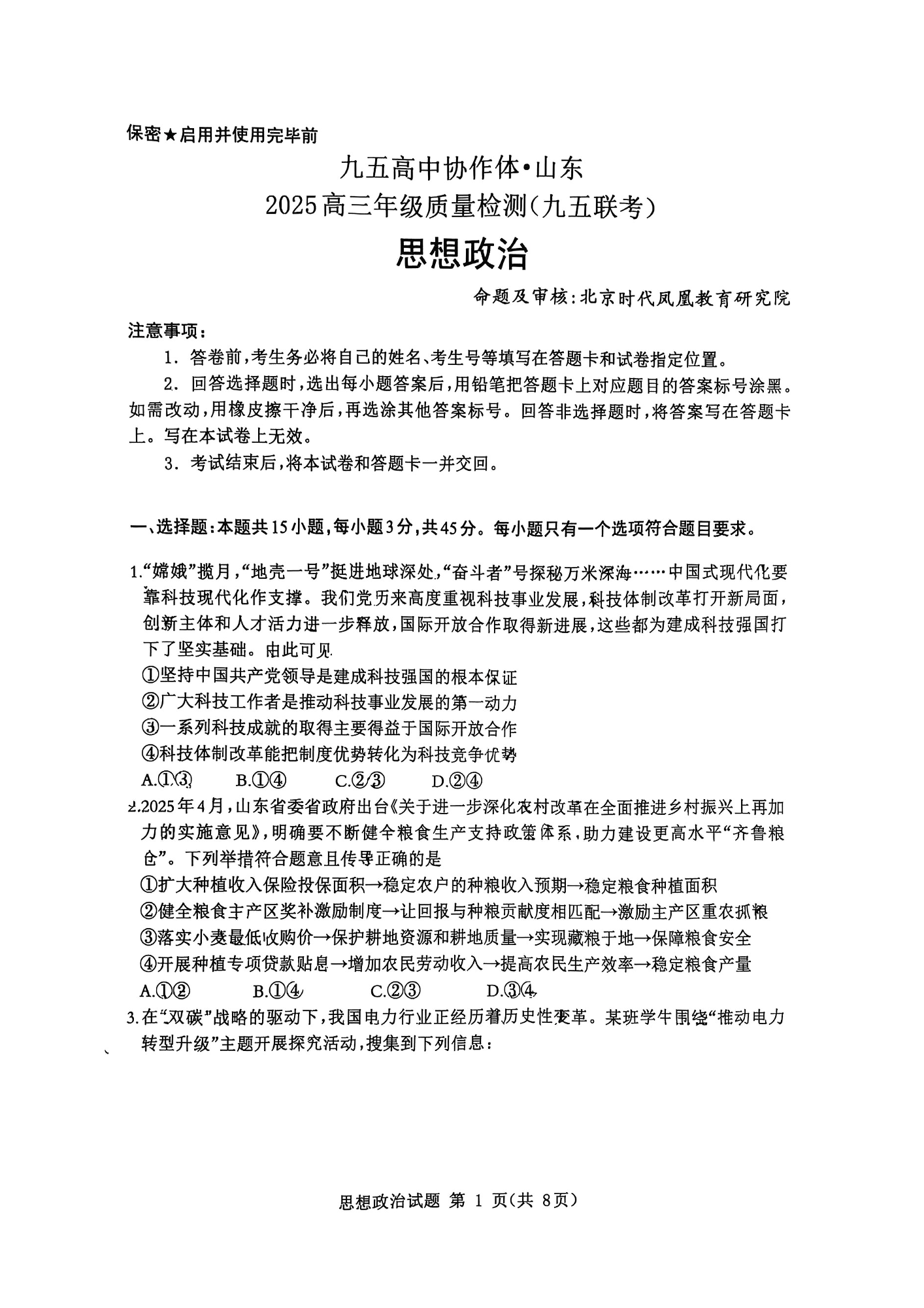 九五高中协作体·山东2025高三年级质量检测 政治.pdf