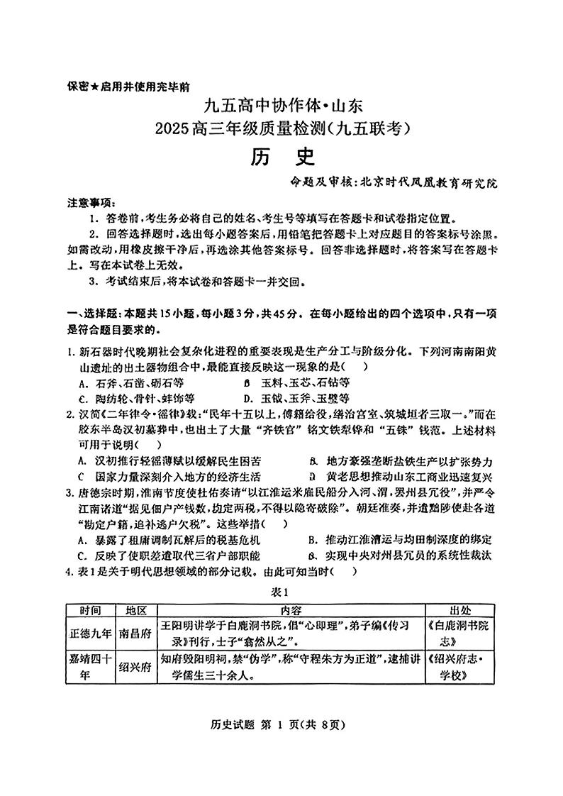 九五高中协作体·山东2025高三年级质量检测 历史.pdf