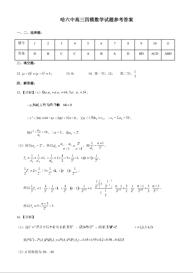 哈尔滨市第六中学2025届高三第四次模拟考试 数学答案.docx