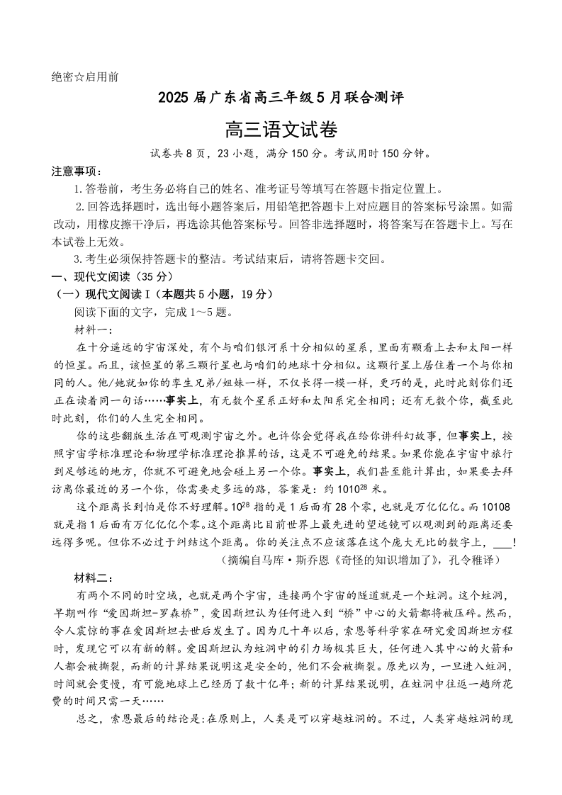 上进联考-2025届广东省高三5月联合测评-语文(含答案).docx